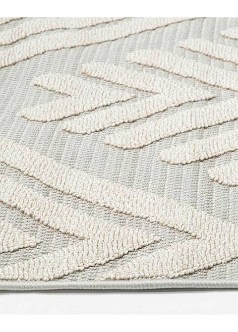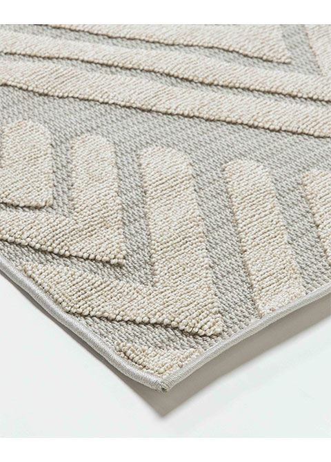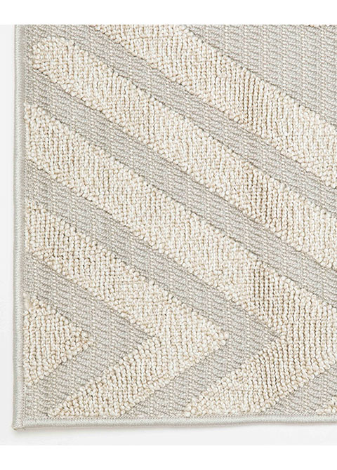 Este tapete combina un diseño geométrico moderno con una paleta de colores neutra y azul suave, ideal para espacios contemporáneos. Su patrón distintivo añade un toque de sofisticación y estilo.