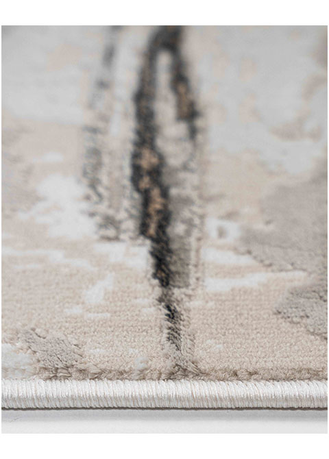 Este tapete de estilo moderno presenta un diseño abstracto en tonos beige y gris oscuro. Ideal para dar un toque contemporáneo a cualquier espacio. Su fabricación a máquina asegura durabilidad y fácil mantenimiento.