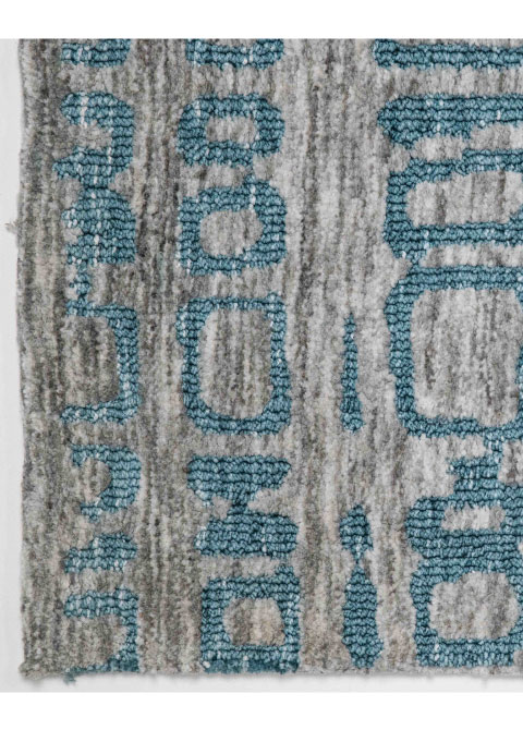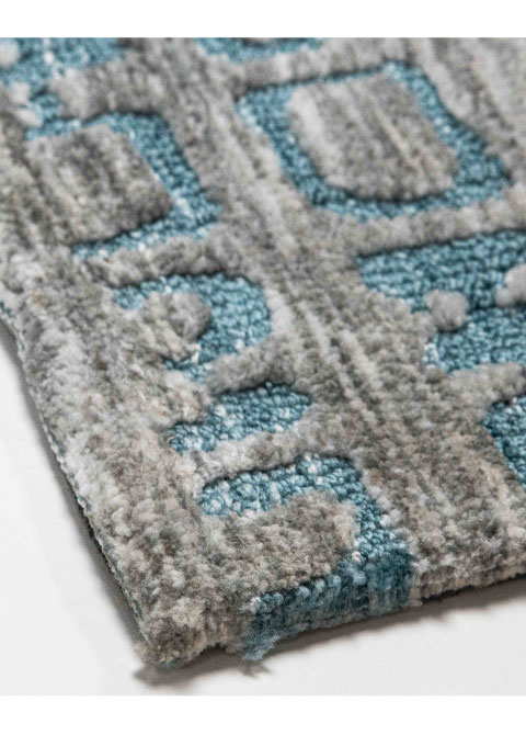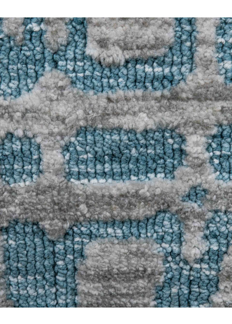 Este tapete moderno presenta un diseño abstracto en tonos grises y azules. Ideal para interiores, su fabricación a mano en India garantiza una pieza única para tus espacios. Añade un toque contemporáneo a cualquier ambiente.