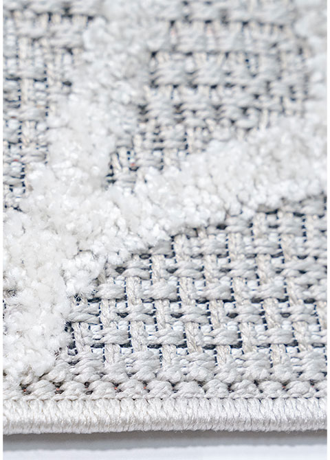 Este tapete moderno es una adición versátil para cualquier espacio, ya sea interior o exterior. Su diseño abstracto en plata sobre un fondo gris aporta un toque contemporáneo y sofisticado.