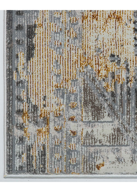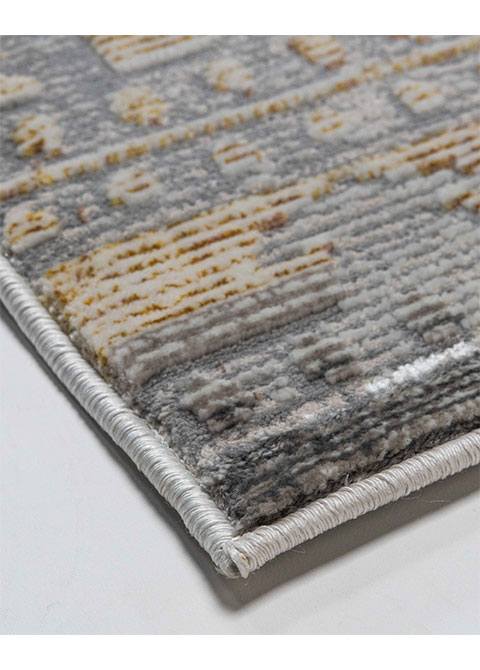Inicio / Tapetes Decorativos / Tapete Moderno Gris Con Diseño Geométrico En Dorado Colección Elif
