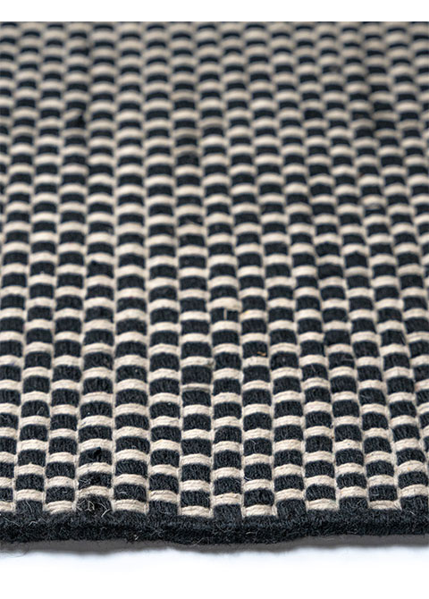 Este tapete presenta un diseño geométrico que aporta un toque moderno y sofisticado a cualquier espacio. Ideal para interiores, su fabricación a mano en India asegura una pieza única y duradera.