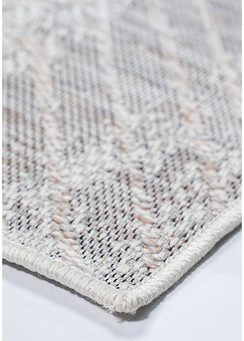 Este tapete moderno en color gris, con un diseño geométrico texturizado, es una excelente opción para aquellos que buscan un producto duradero y con estilo para exteriores. La colección NUBIA, fabricada en Egipto mediante técnicas de producción a máquina, garantiza una alta calidad y resistencia, adaptándose perfectamente a las necesidades de espacios exteriores.