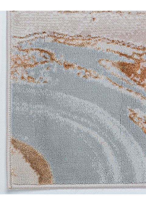 Este tapete presenta un diseño abstracto moderno con un fondo neutro y detalles en bronce. Ideal para interiores, este tapete añadirá un toque artístico a cualquier espacio. Su fabricación a máquina asegura durabilidad y fácil mantenimiento.