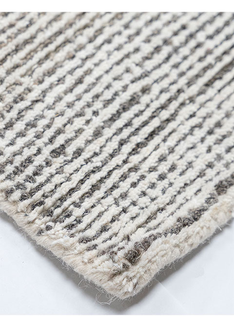 Este tapete, parte de la colección VEDAS, es una pieza artesanal que realza cualquier ambiente interior. Fabricado a mano en India, su diseño abstracto en tonos neutros y grises ofrece una estética moderna y sofisticada.
