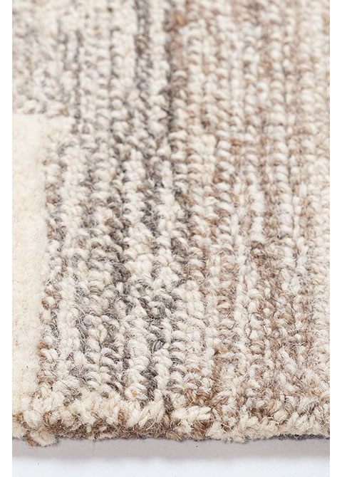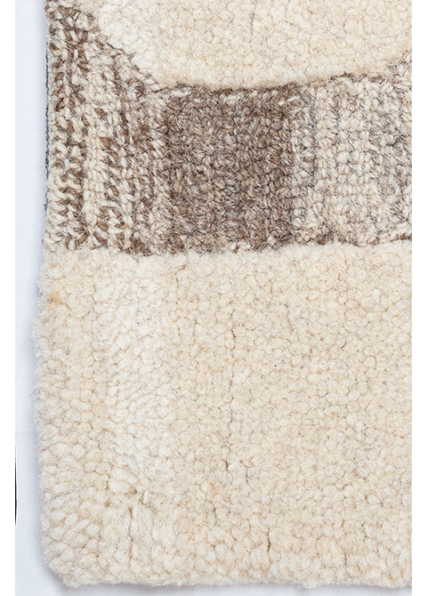 Este tapete de diseño moderno presenta un patrón abstracto geométrico en tonos neutros, ideal para complementar espacios contemporáneos. Su fabricación artesanal y origen indio aseguran una pieza única y duradera. Perfecto para interiores.