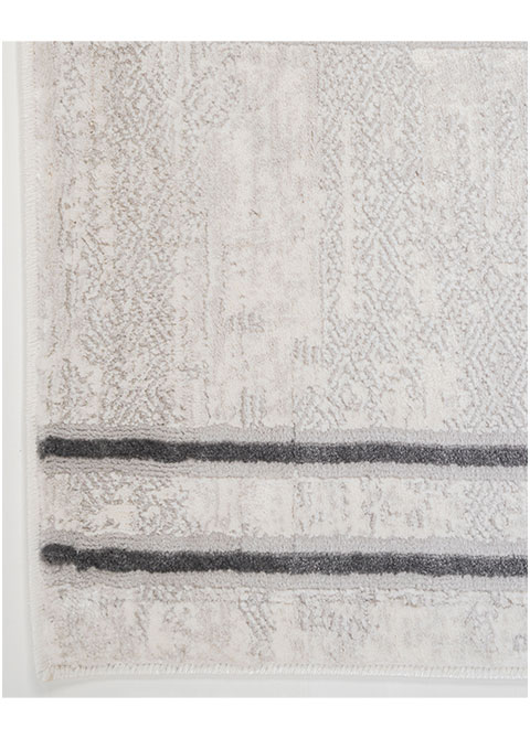 Añade un toque de modernidad a tus espacios con este tapete de diseño geométrico. Ideal para interiores, su patrón en tonos neutros y grises complementa cualquier estilo decorativo. Descubre la colección VELEKA.