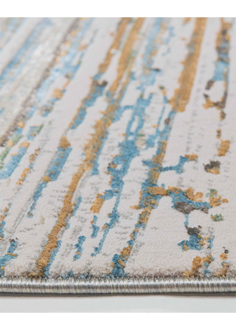 Descubre el toque moderno que tu espacio necesita con este tapete de la colección ZARIA. Sus líneas en tonos azules y café sobre un fondo neutro aportan dinamismo y sofisticación a cualquier ambiente. Ideal para interiores.